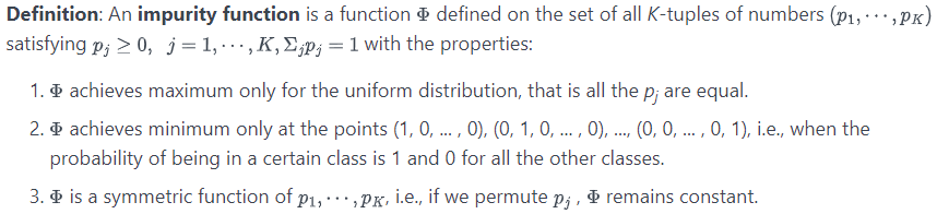 쉽게 풀어 쓴다면 impurity function은 (p1, ..., pk)를 input으로 삼고 있습니다.
