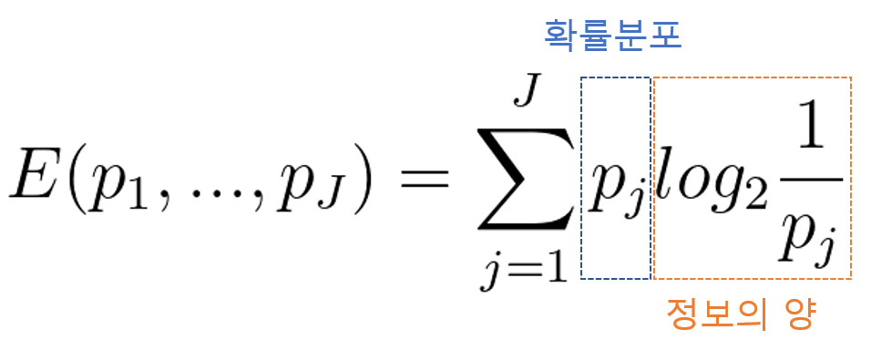 $$E(p_{1},...,p_{J}) = \sum_{j = 1}^{J}p_{j}log_{2}\frac{1}{p_{j}}$$