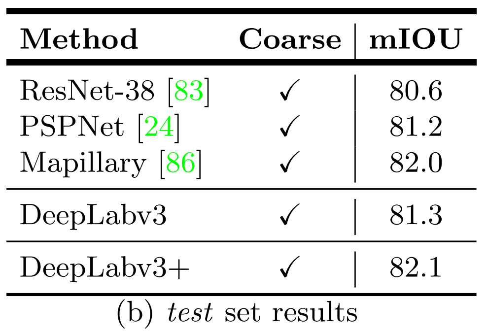 (참고로 train dataset에는 coarse annotation도 포함해서 훈련시켰다고 합니다.)